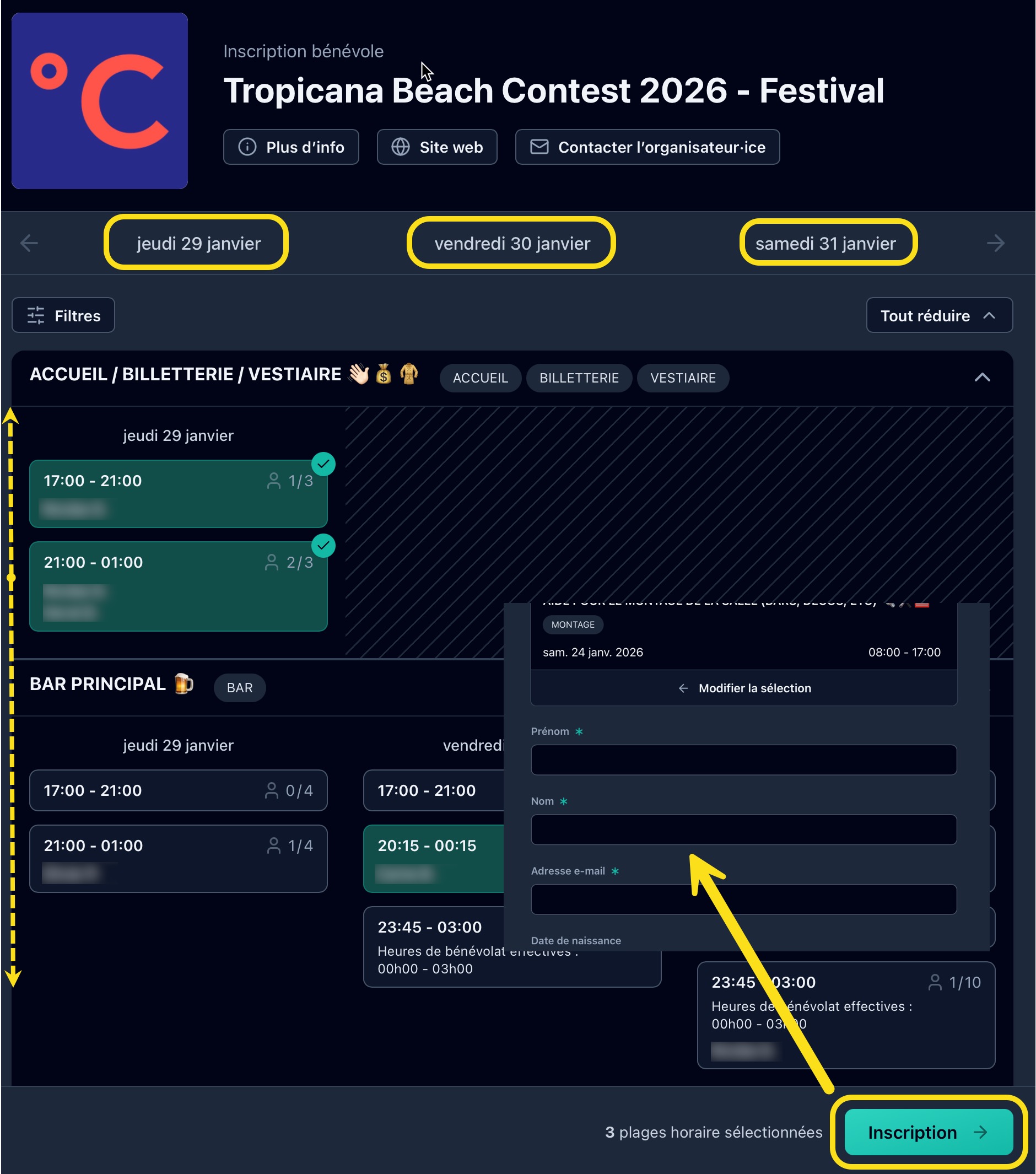 3) Clique sur la/les plage/s qui t’intéresse/nt et remplis les infos